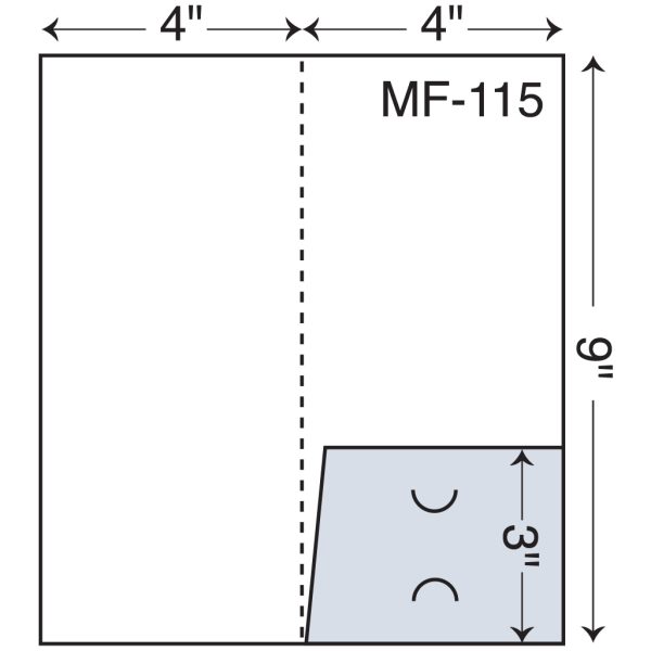 This style is a Mini Folder with one 3″ right glued pocket, semicircle horizontal business card slits in the right pocket and single scored spine.